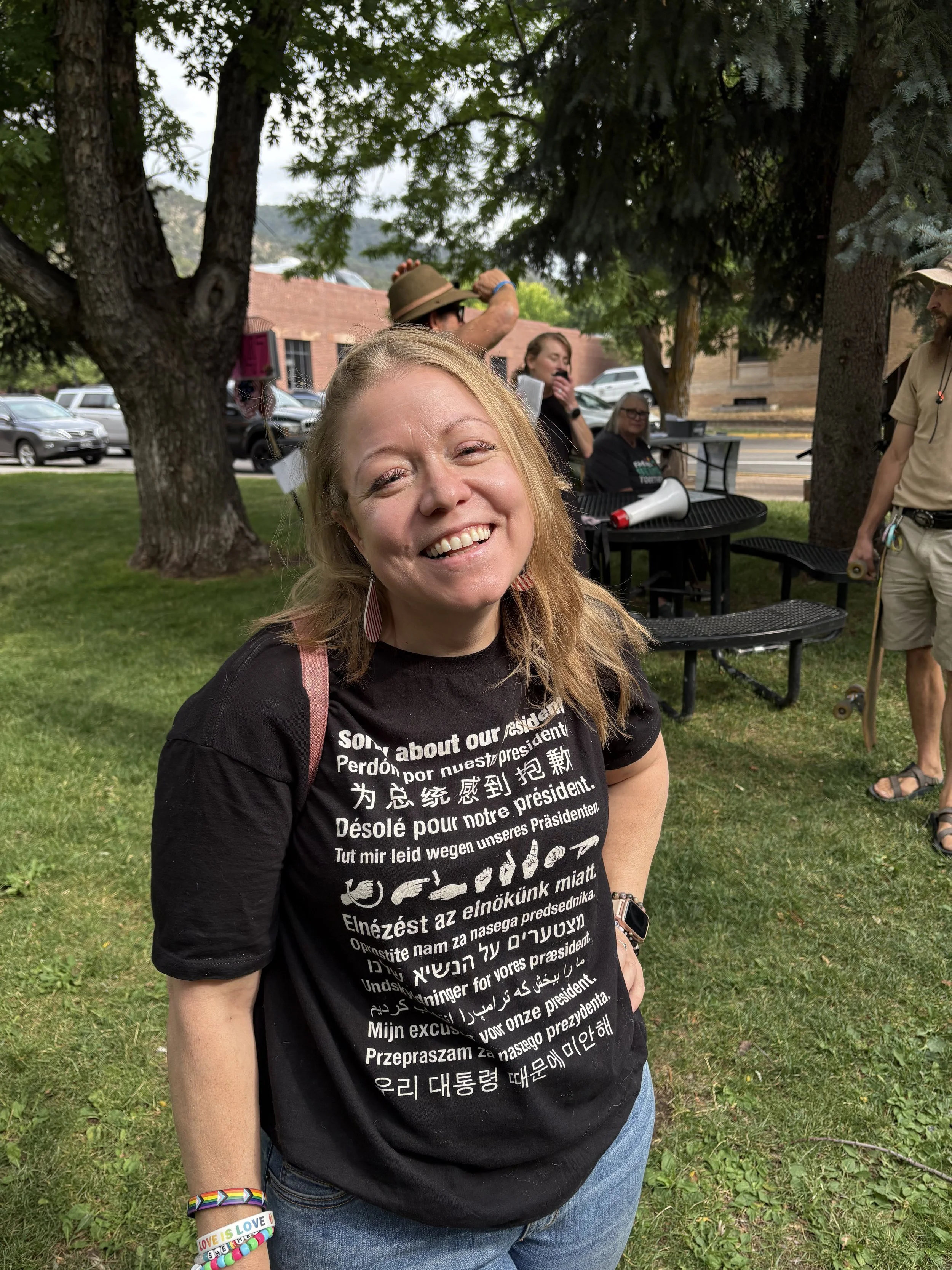 I'm a passionate community advocate, vintage curator, and fierce defender of free expression. As a resident of Garfield County and a vocal supporter of our public libraries, I’ve been on the front lines of the fight against censorship and Christian nationalism in Colorado. Whether I’m organizing protests, attending board meetings, or building allyship programs for immigrants and LGBTQ+ folks, I bring heart, humor, and a relentless drive to protect everyone’s right to read, learn, and belong.